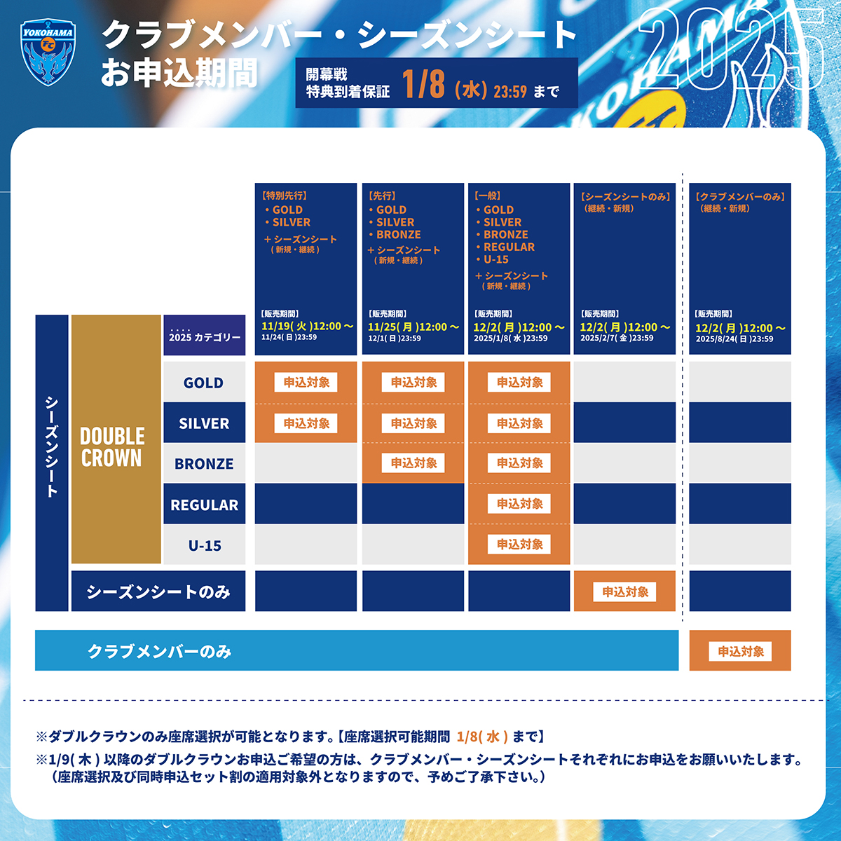 ※4 クラブメンバーとシーズンシート同時のご入会(ダブルクラウン)が必要となります。