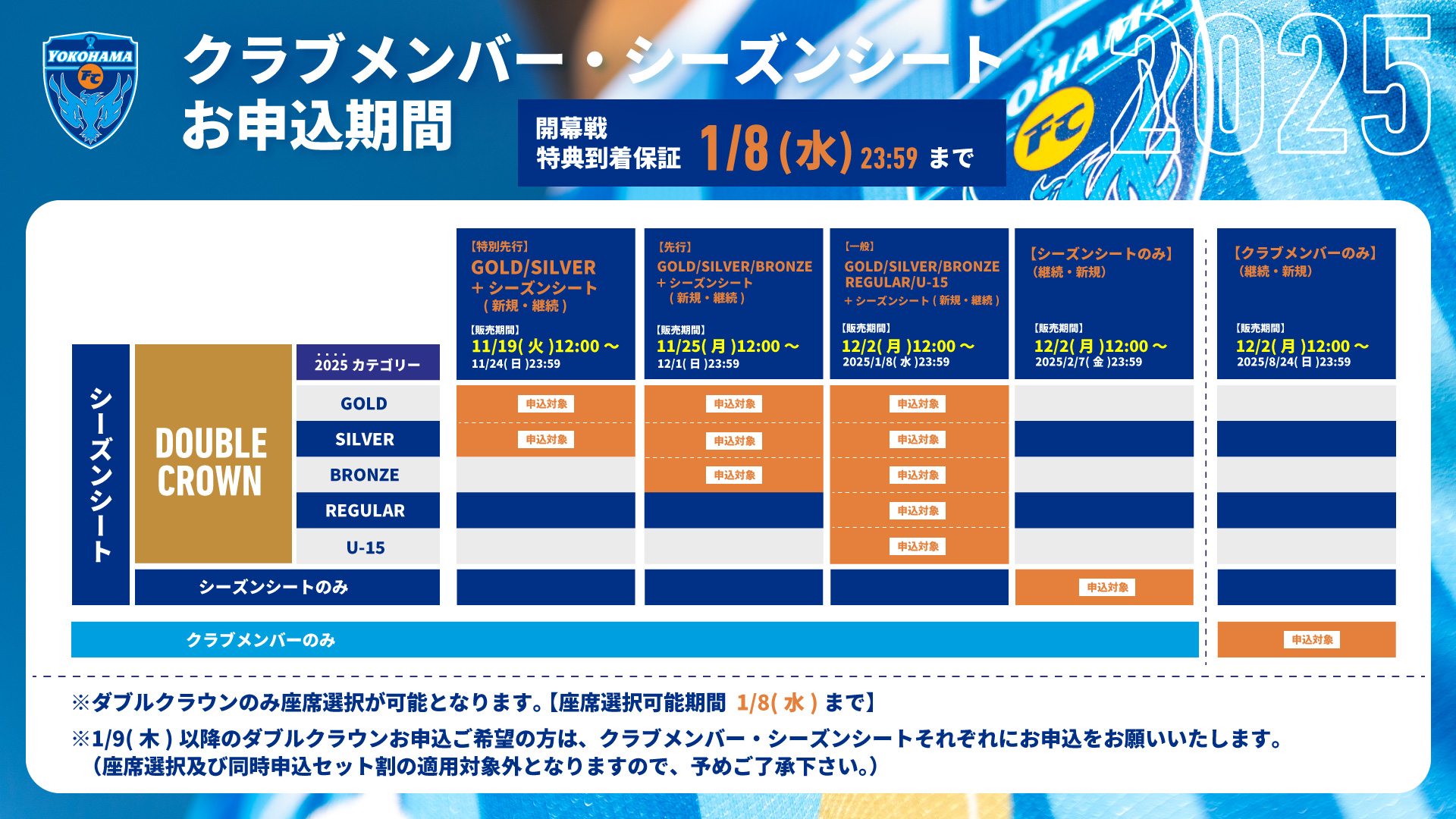 2025シーズンの横浜FCホームゲームチケットを一般販売よりも前のタイミングでご購入いただけます。
